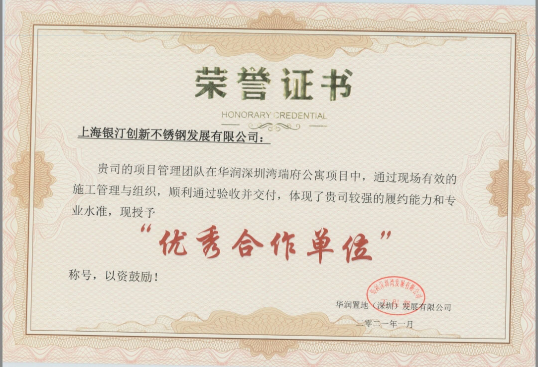每次不锈钢定制品的加工安装完成,使项目得以如期开业举行,都令我们心潮起伏、热血澎湃,这离不开每个银汀人的辛勤付出,密切配合,这些成果凝结着每个银汀人的心血和汗水,彰显了不同凡响的银汀风采。这一年我们收获了更多的肯定与赞扬,载誉而归。